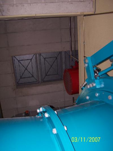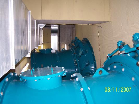 Blick vom Turbinenkeller zur Kraftwerksdecke mit Montagelucken